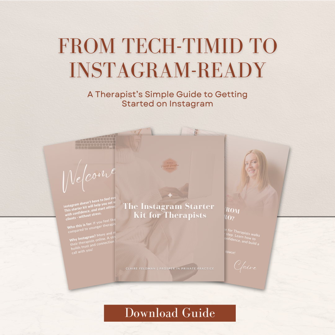 "From Tech-Timid to Instagram-Ready" is a step-by-step guide designed for therapists who feel overwhelmed by Instagram. Whether you're unsure how to set up your profile, write a bio that attracts clients, or create your first posts, this guide walks you through it simply and stress-free—even if you're not tech-savvy.